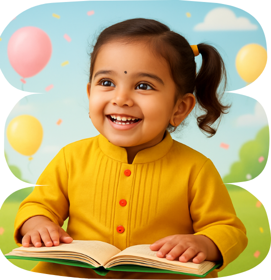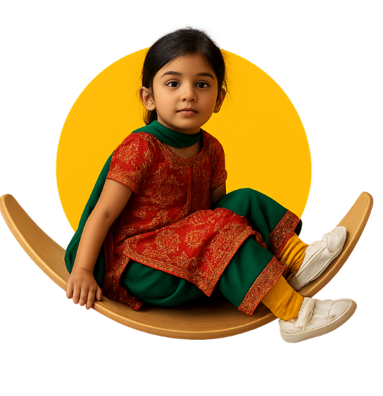 A calm, science-backed Dharmic learning space where children grow emotionally strong, focused, and compassionate.